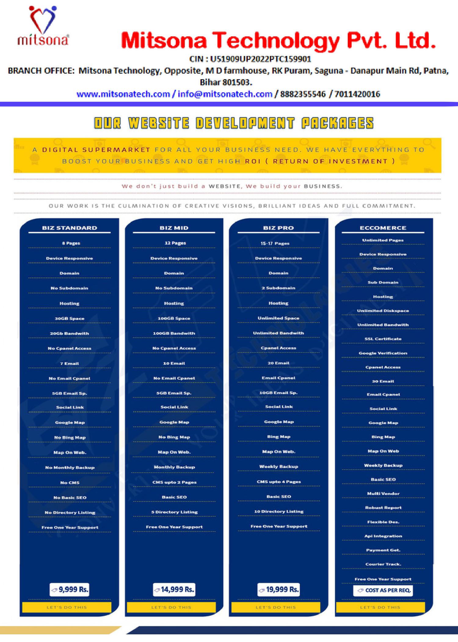 website design patnaAll our services are being offered at very competitive prices. Our job is not over, once your website is live. Mitsona Technology also provide your with all the support/guidance to ensure smooth operation of your website. All of this at very affordable prices. …